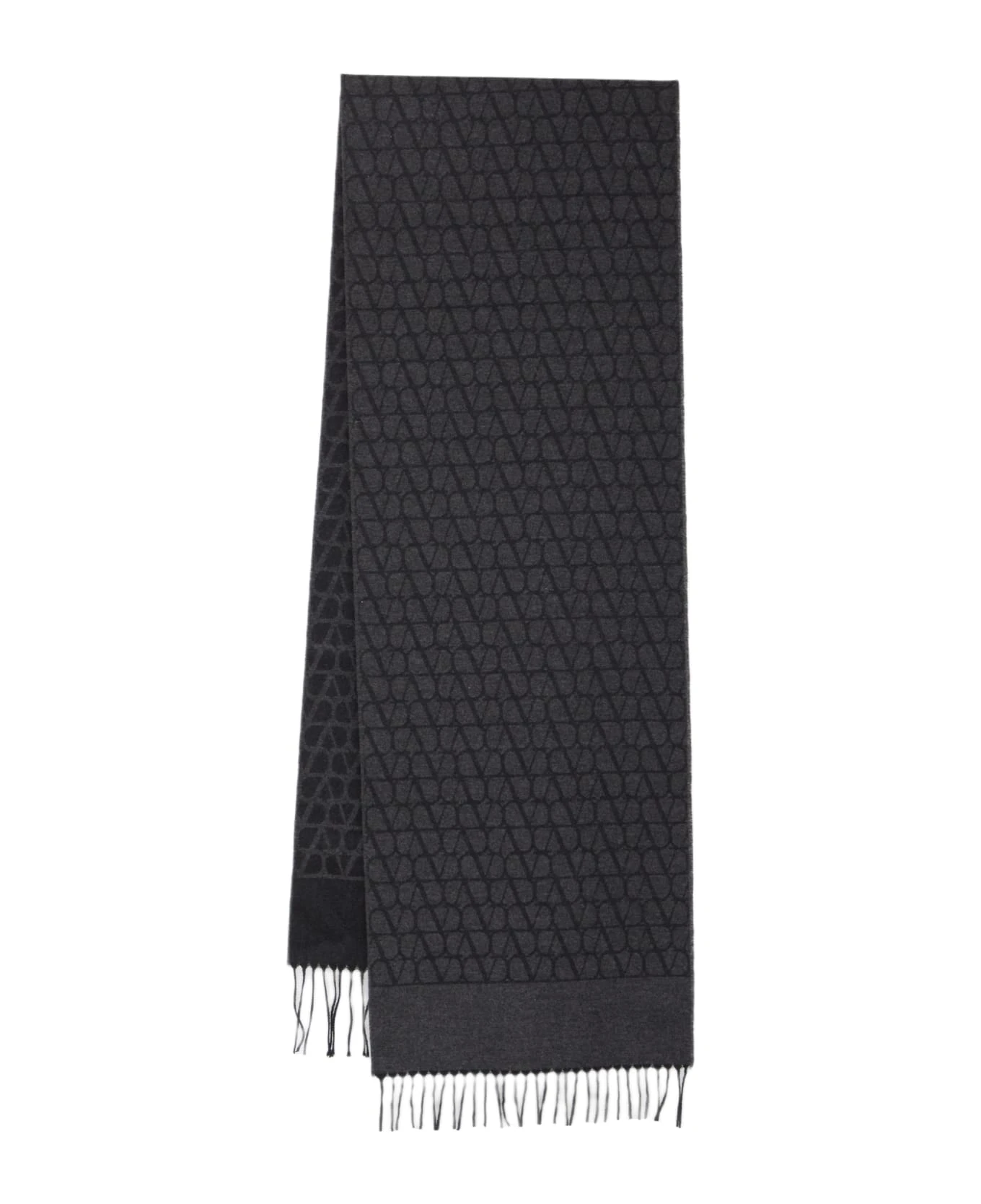 Wool and cashmere scarf with Toile Iconographe jacquard motif. Fringed hems.