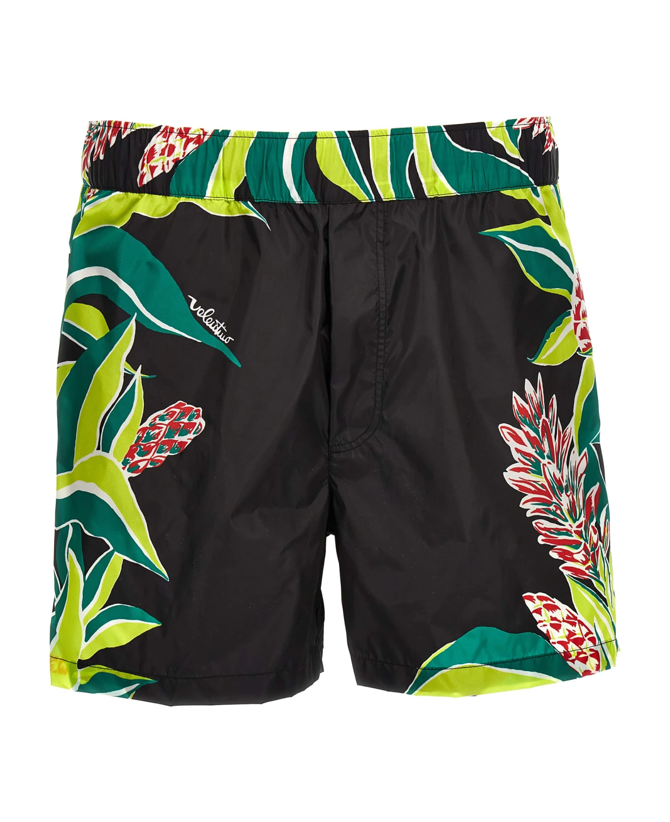 Swimming trunks in a technical floral print fabric with elastic and a drawstring at the waist, pockets and inner mesh briefs.