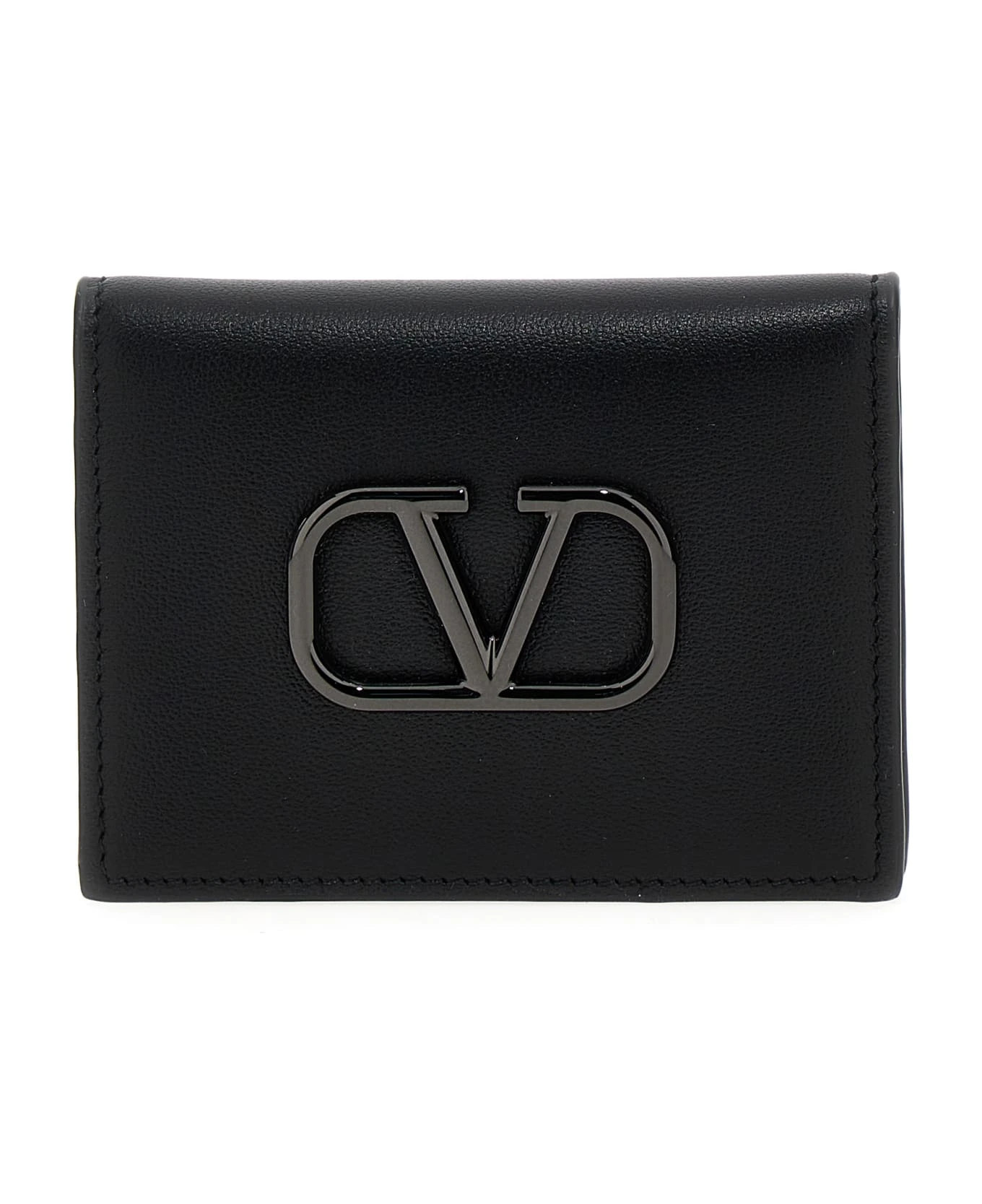 Valentino Garavani VLOGO cardholder in leather with metallic logo.