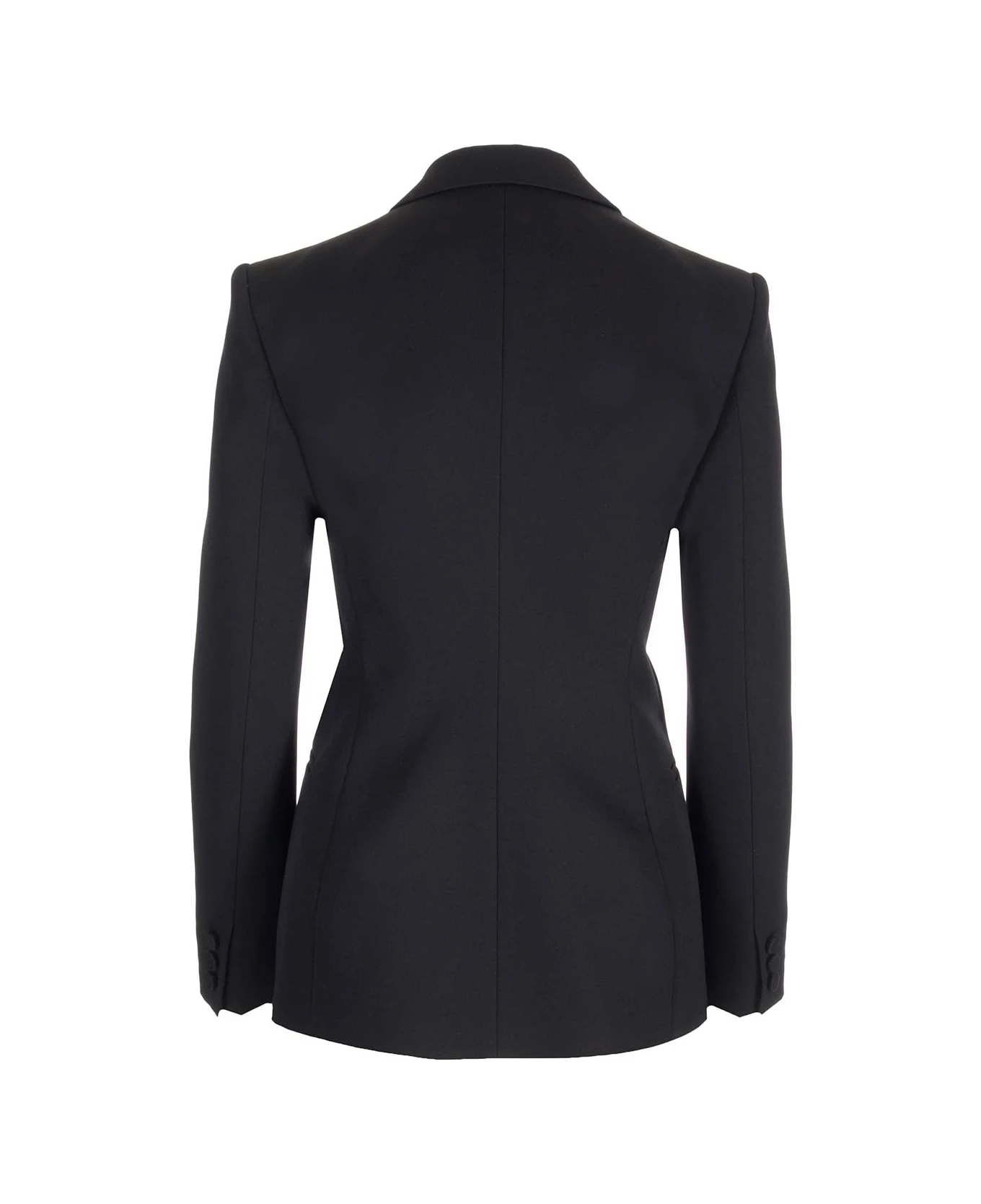 Single-breasted black jacket from Valentino Garavani in Grisaille, Saglia lining, satin lapels, single-breasted front closure with buttons, two welt pockets and a chest pocket,