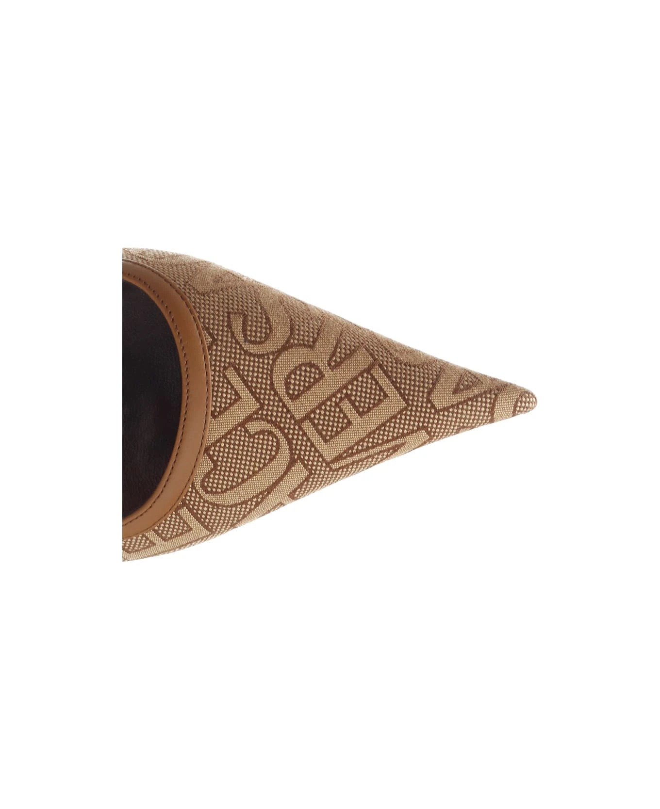 Dècolletè with strap from Versace in “Versace Allover” jacquard canvas, adjustable buckle closure, pointed toe, stiletto heel.
