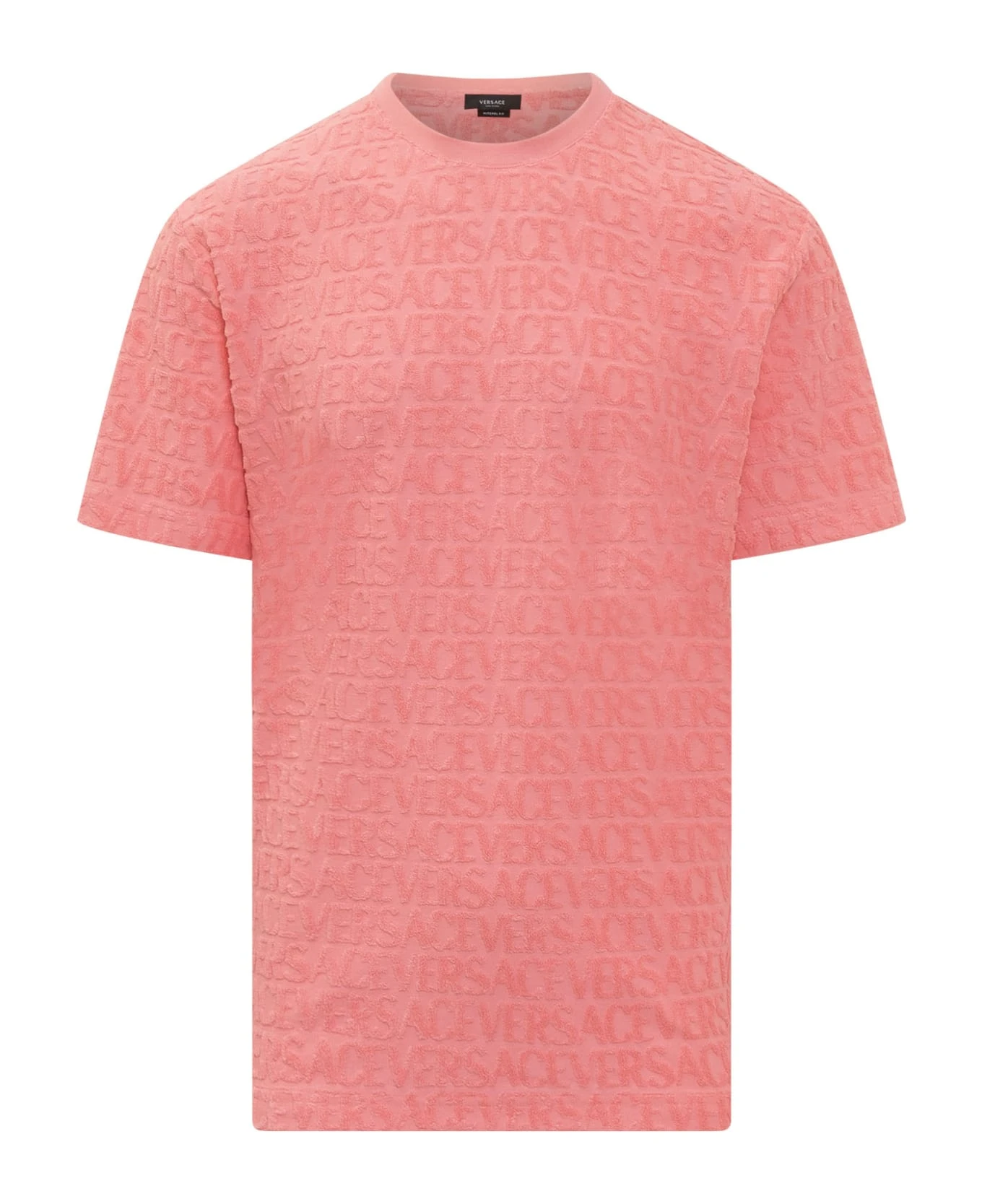 Crew neck terry t-shirt. Ribbed collar. Versace Allover embossed pattern.