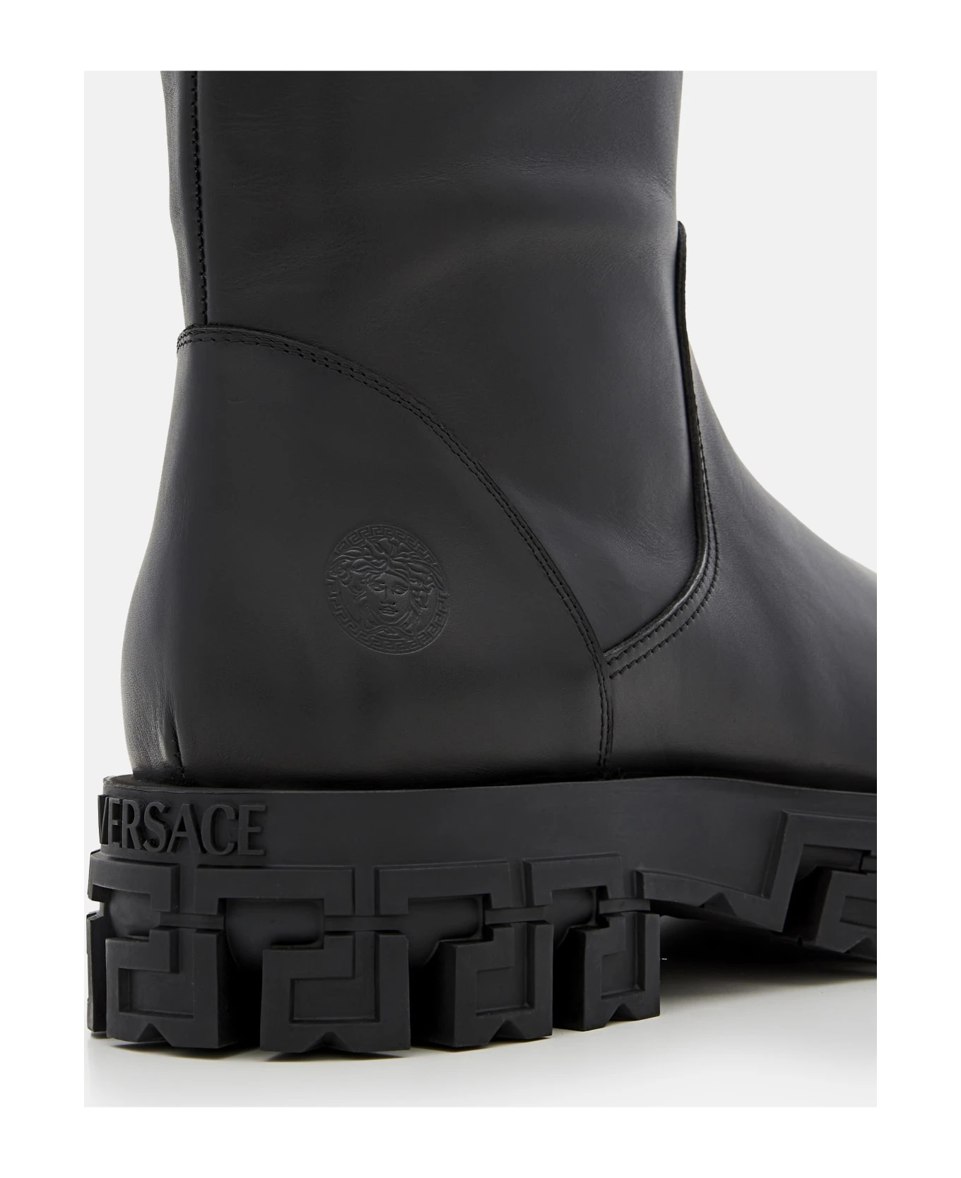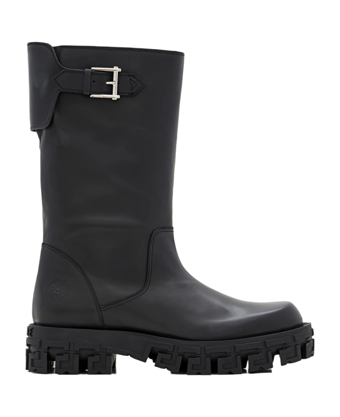 Side belt detail. Leather upper. Rubber sole. Color: black.