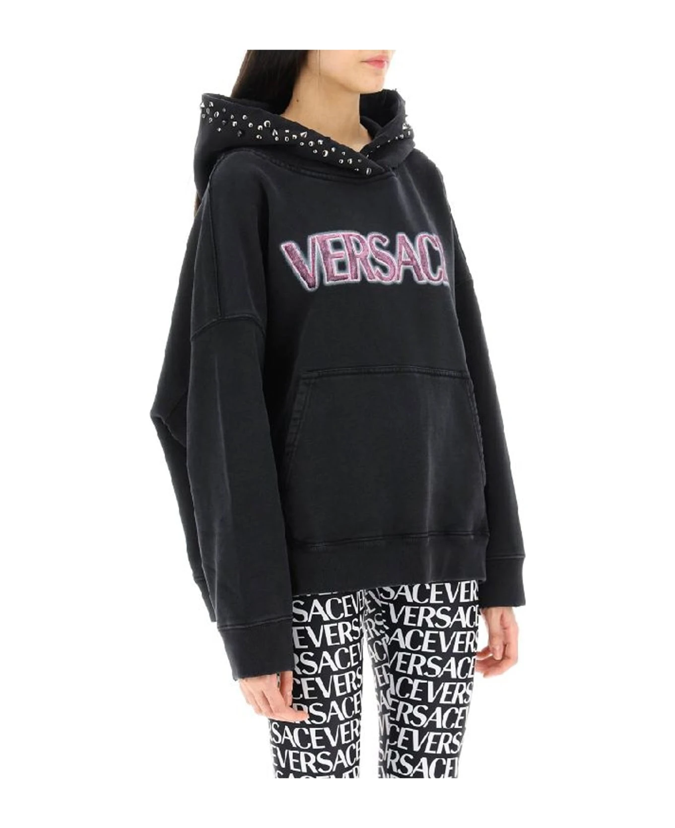 – Composition: 100% cotton – Long sleeves – Hood – Metal applications – Kangaroo pocket – Ribbed trims – Front logo detail – Machine wash (delicate)