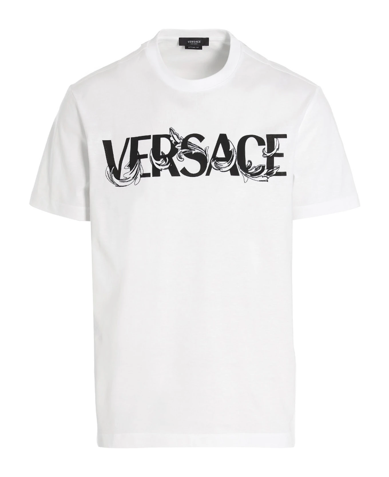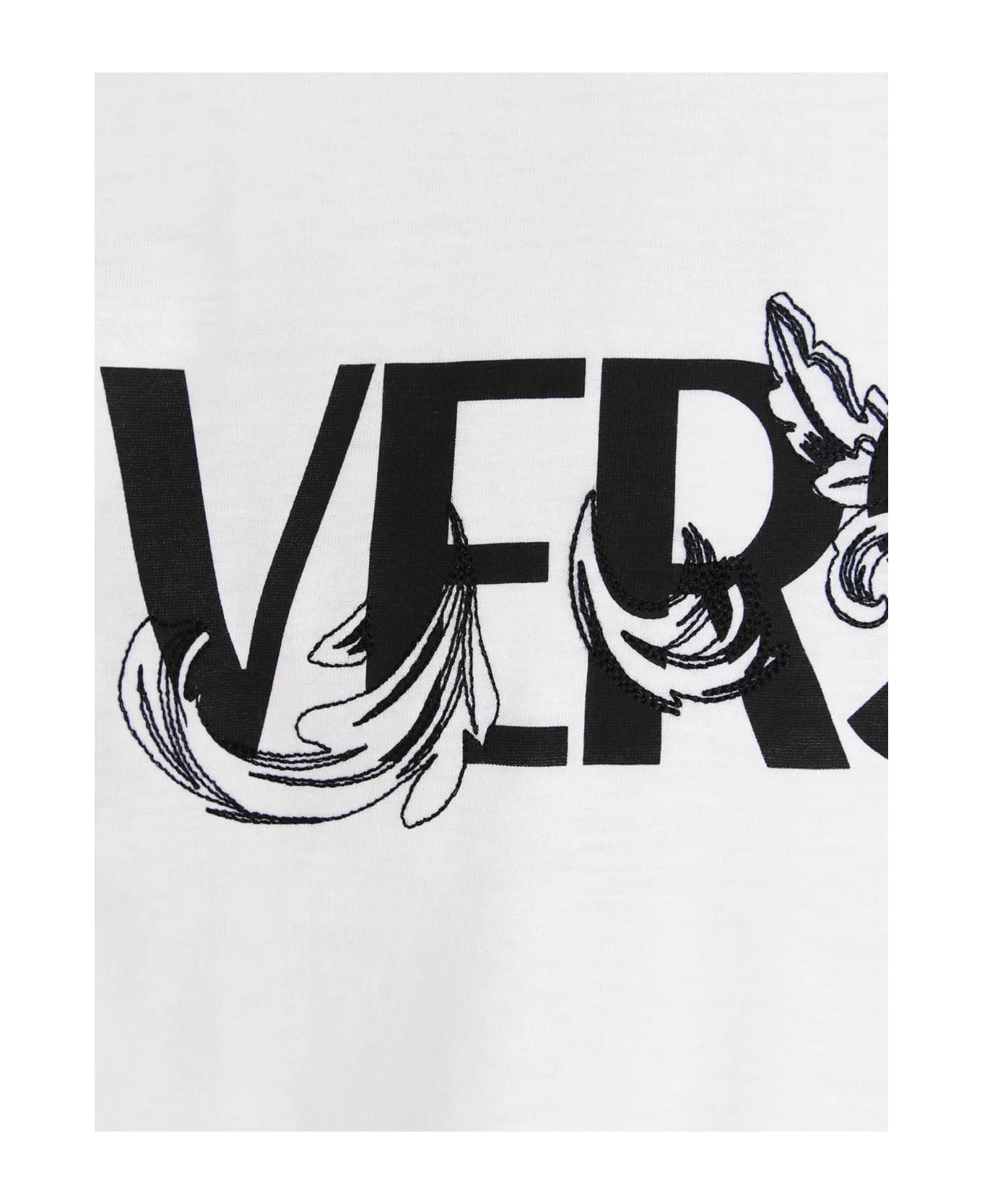 Cotton, crewneck t-shirt with logo print and front embroidery, and short sleeves.