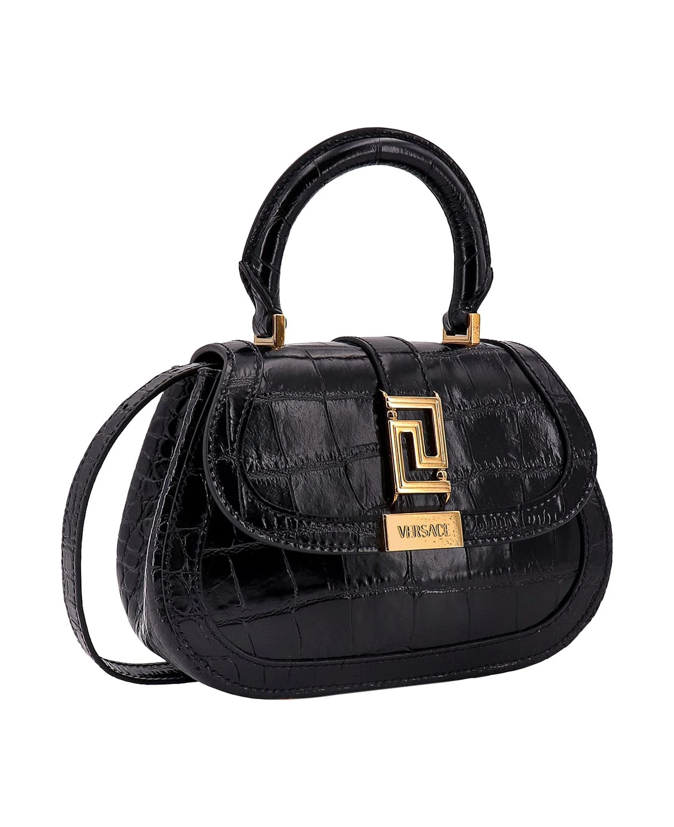 Leather handbag with metal La Greca detail