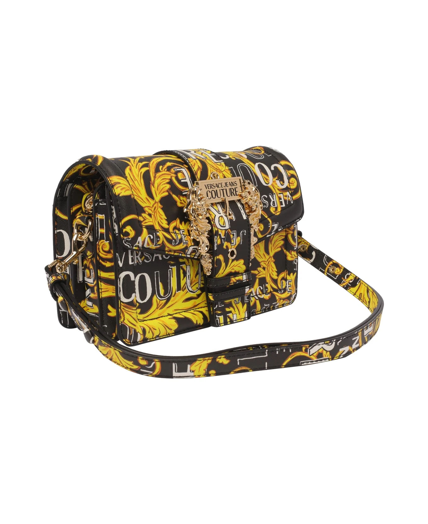 Versace Jeans Couture black logo couture, magnetic closure, 3 sections, inner zipped pocket, adaptable and removable strap