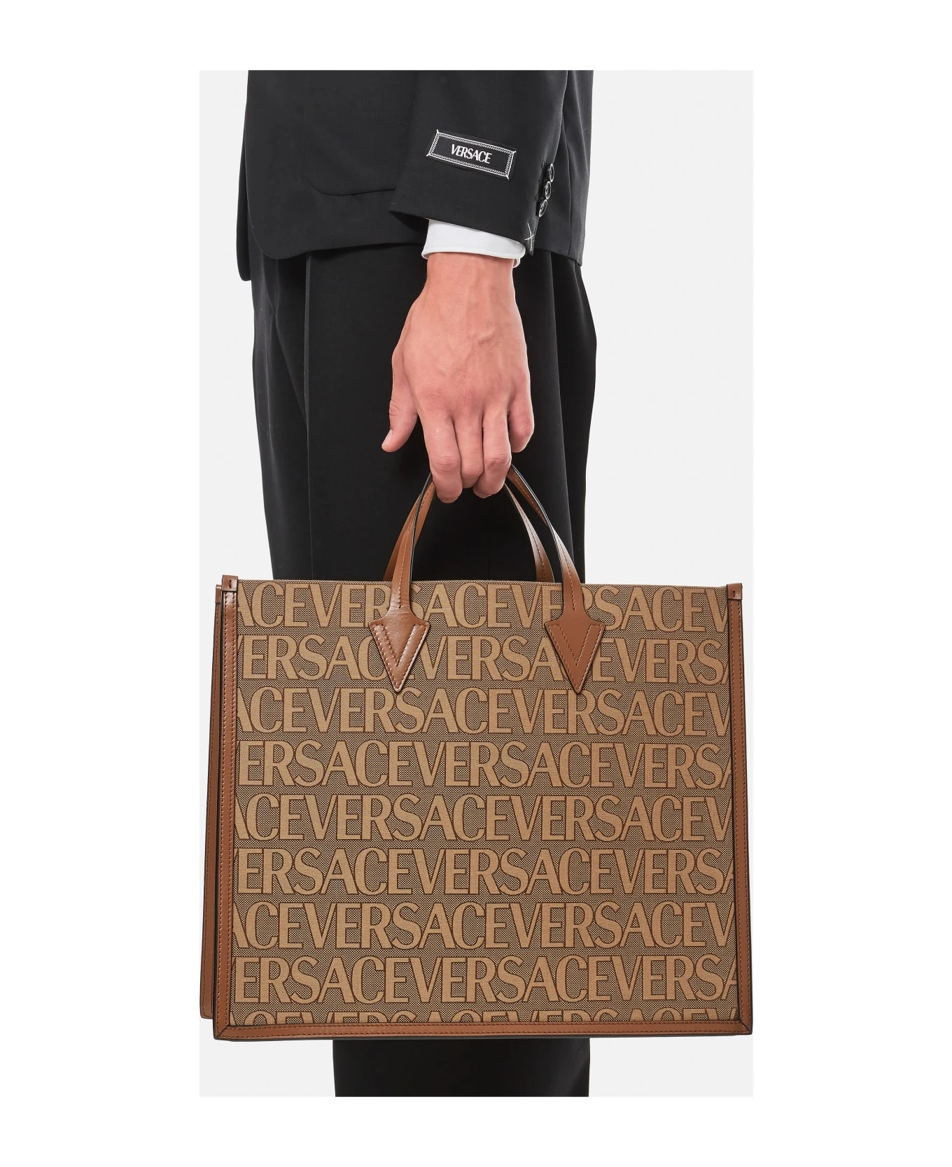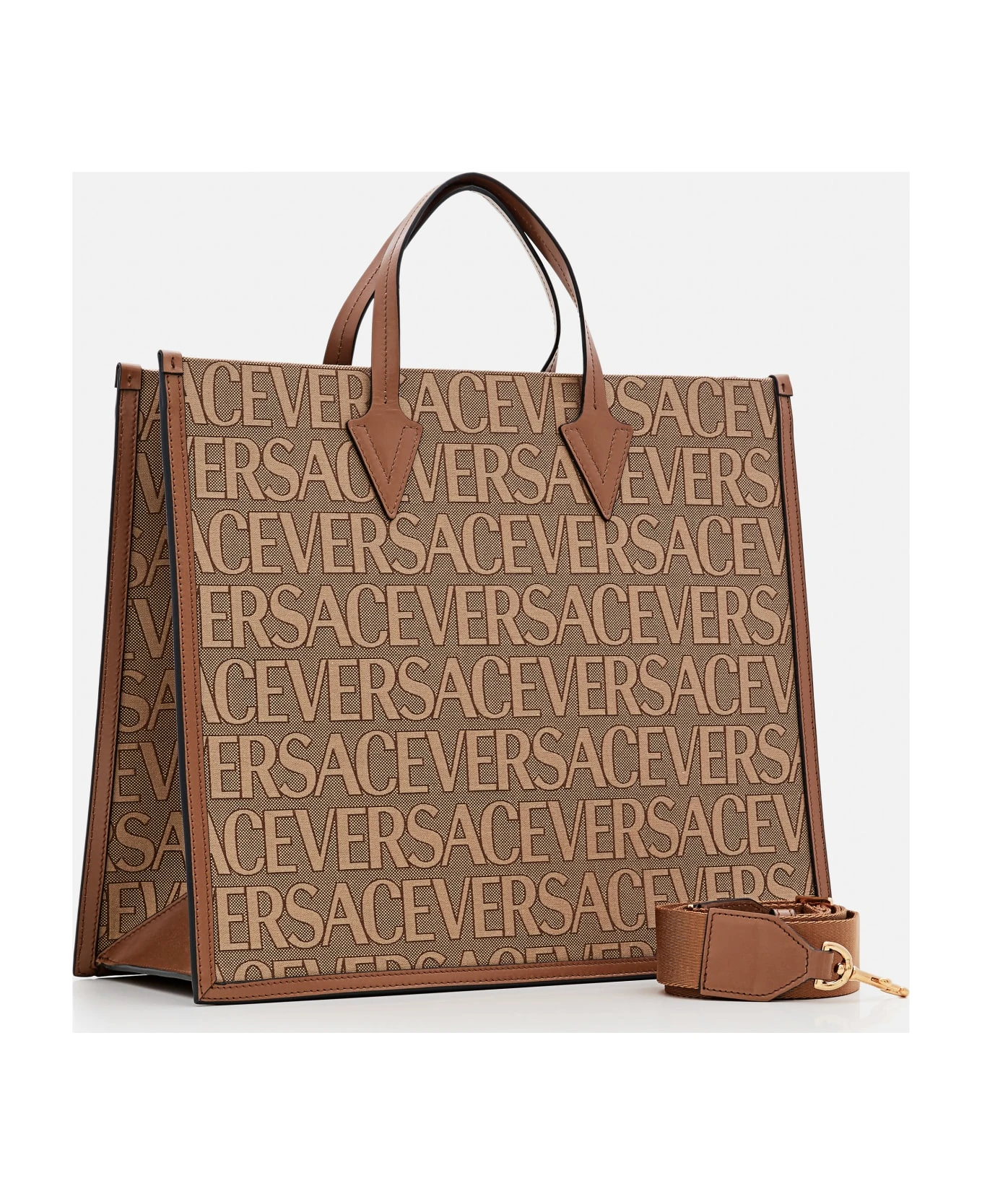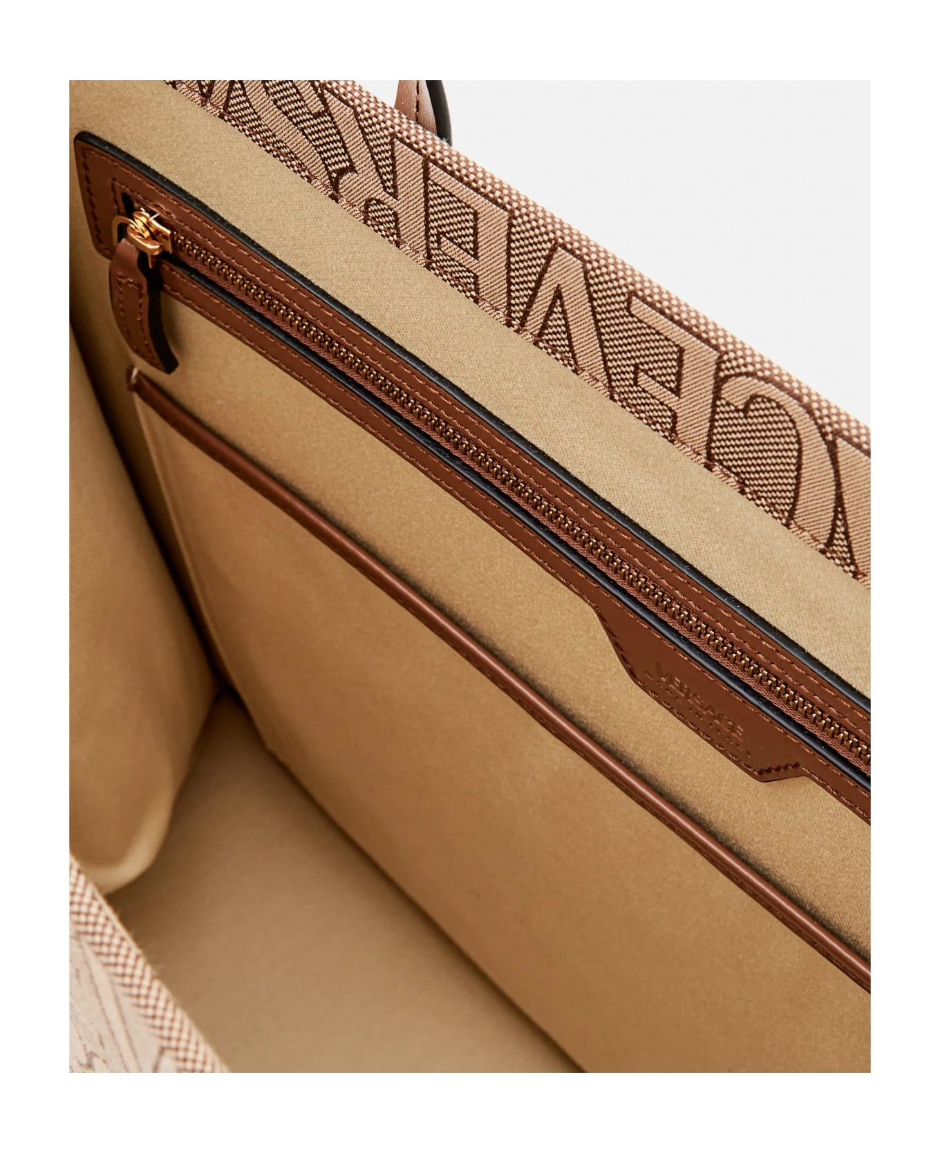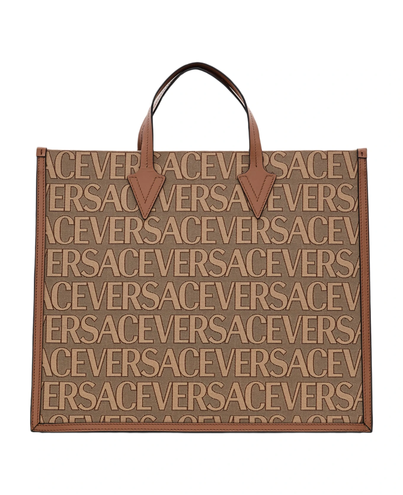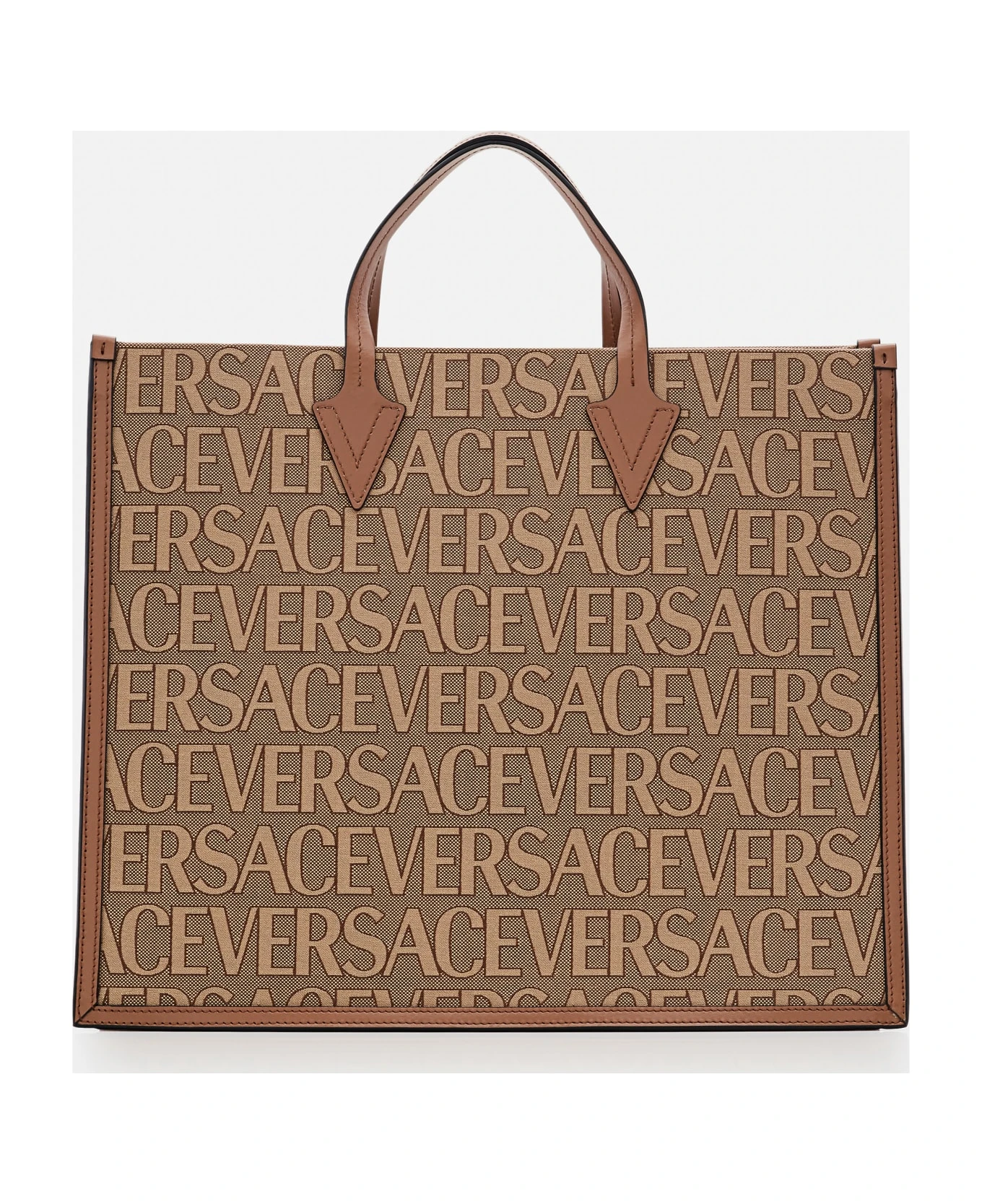 All-over Versace print. Double top handles. Color: beige, brown.