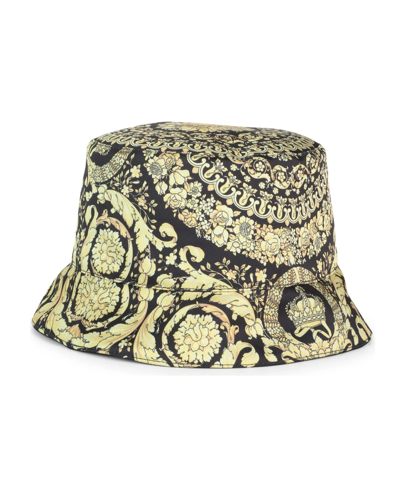 Versace cloche crafted in nylon with Barocco print. Lined interior.