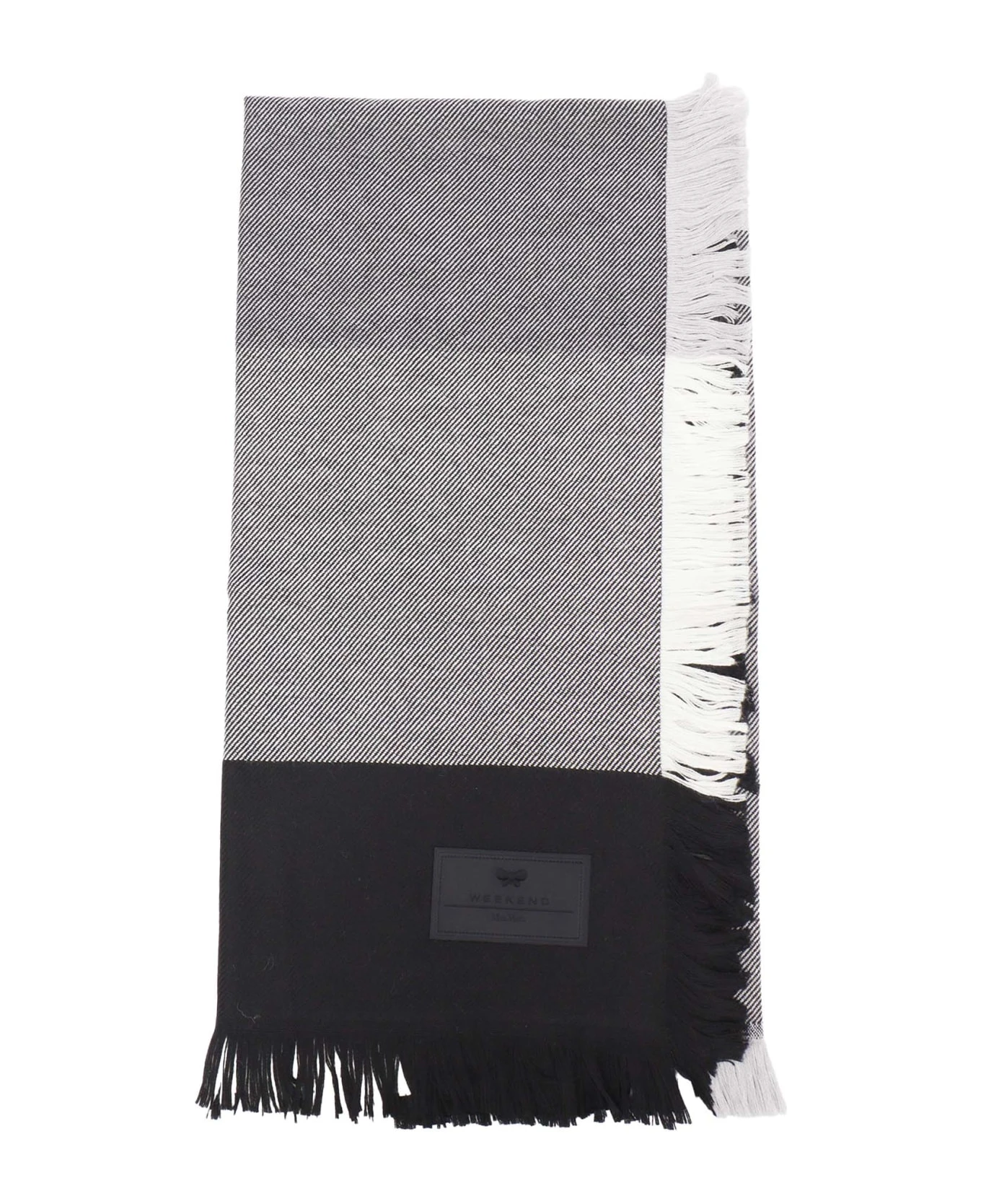 Wool stole, yarn-dyed macro check design, embossed rubberized logo patch