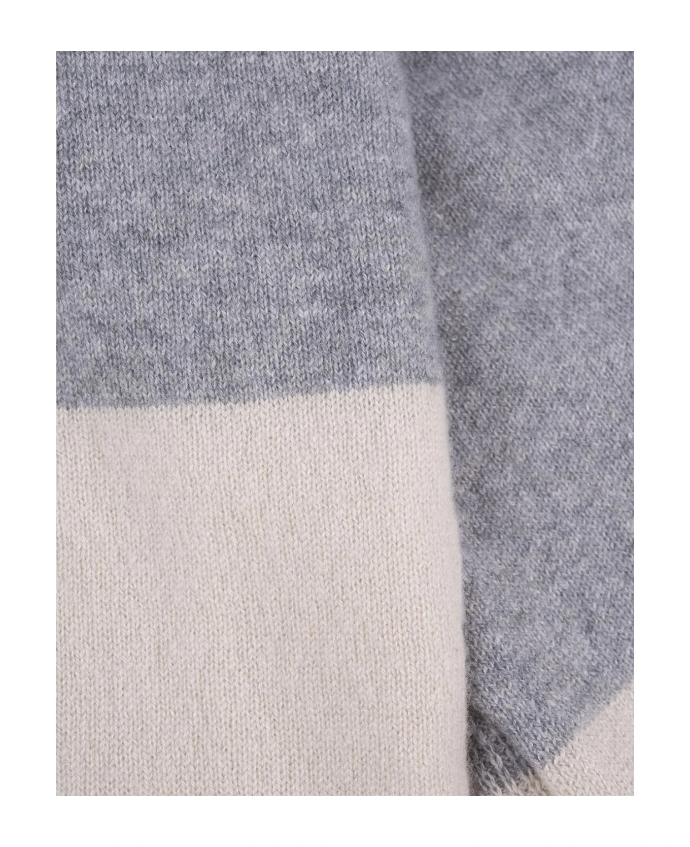 Winter scarf by Fedeli in collaboration with Russo Capri made of pure cashmere yarn with white and grey striped pattern.