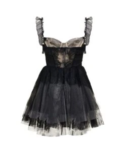 Philosophy Di Lorenzo Serafini Mini Black Flounced Dress With Bow Detail In Lace And Tulle Woman