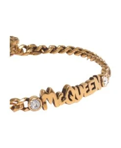 Alexander McQueen Gold-colored Chain Bracelet With Skull Detail And Logo Charm In Brass Woman
