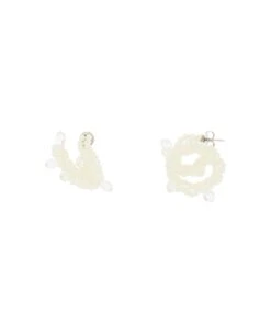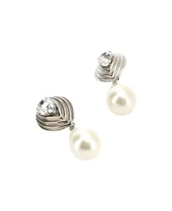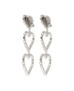 Silver-colored Heart-shaped Clip-on Earrings With Crystal Pendants In Hypoallergenic Brass Woman