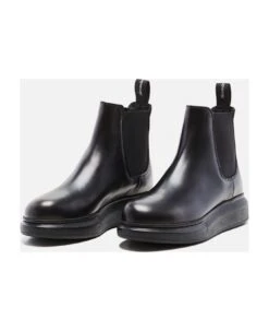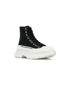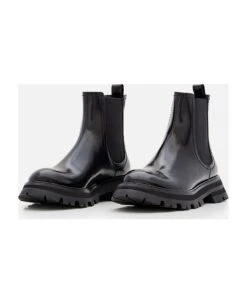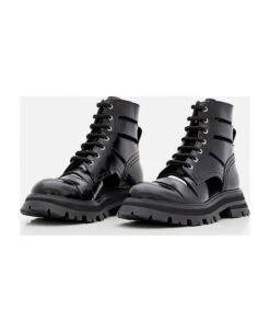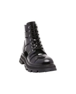 Alexander McQueen ‘tread Slick’ Black Boots With Embossed Logo And Chunky Platform In Leather Woman