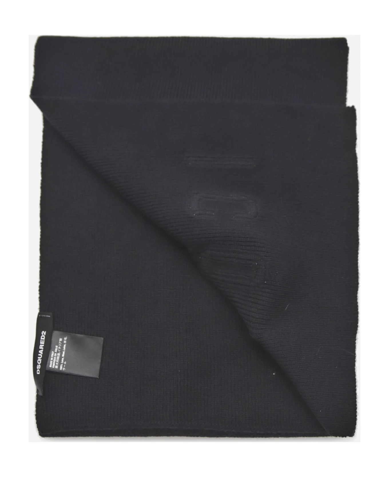 Black Wool Scarf With Contrasting Embroidered Logo from Dsquared2