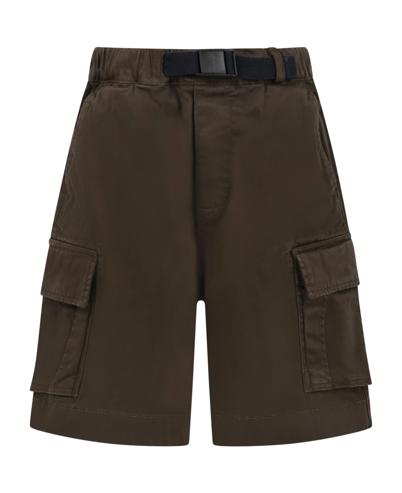 Green shorts, with elastic waistband, snap buckle closure, side pockets and large pockets. They are embellished with logo patch on the back.