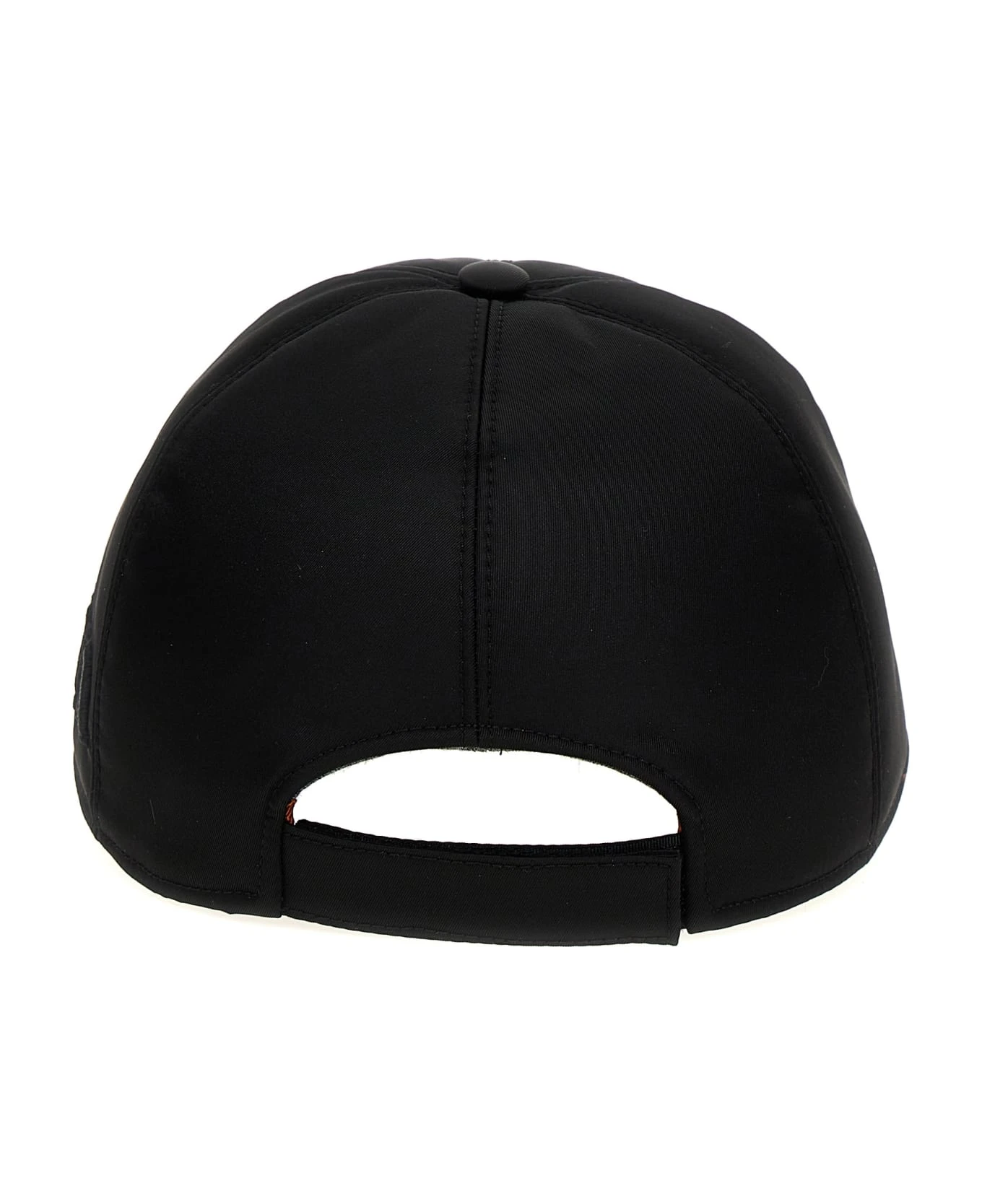 Nylon cap with front embroidery, side embroidered logo, adjustable strap with velcro.